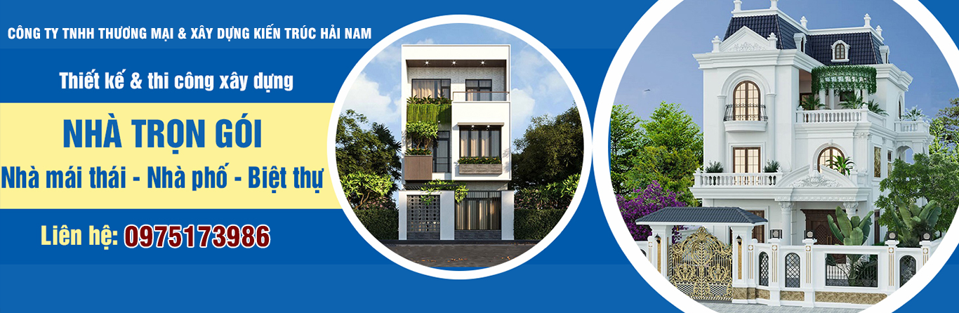 Công ty TNHH Thương Mại và Xây Dựng Kiến Trúc Hải Nam là đơn vị chuyên thiết kế thi công nhà trọn gói, sửa chữa cải tạo công trình như nhà phố, nhà cấp 4, biệt thự, nhà phố 2 tầng,... Ngoài ra còn có tiệm cafe, nhà xưởng, công ty,..., xây nhà phần thô. Hotline tư vấn 24/24: 0975173986